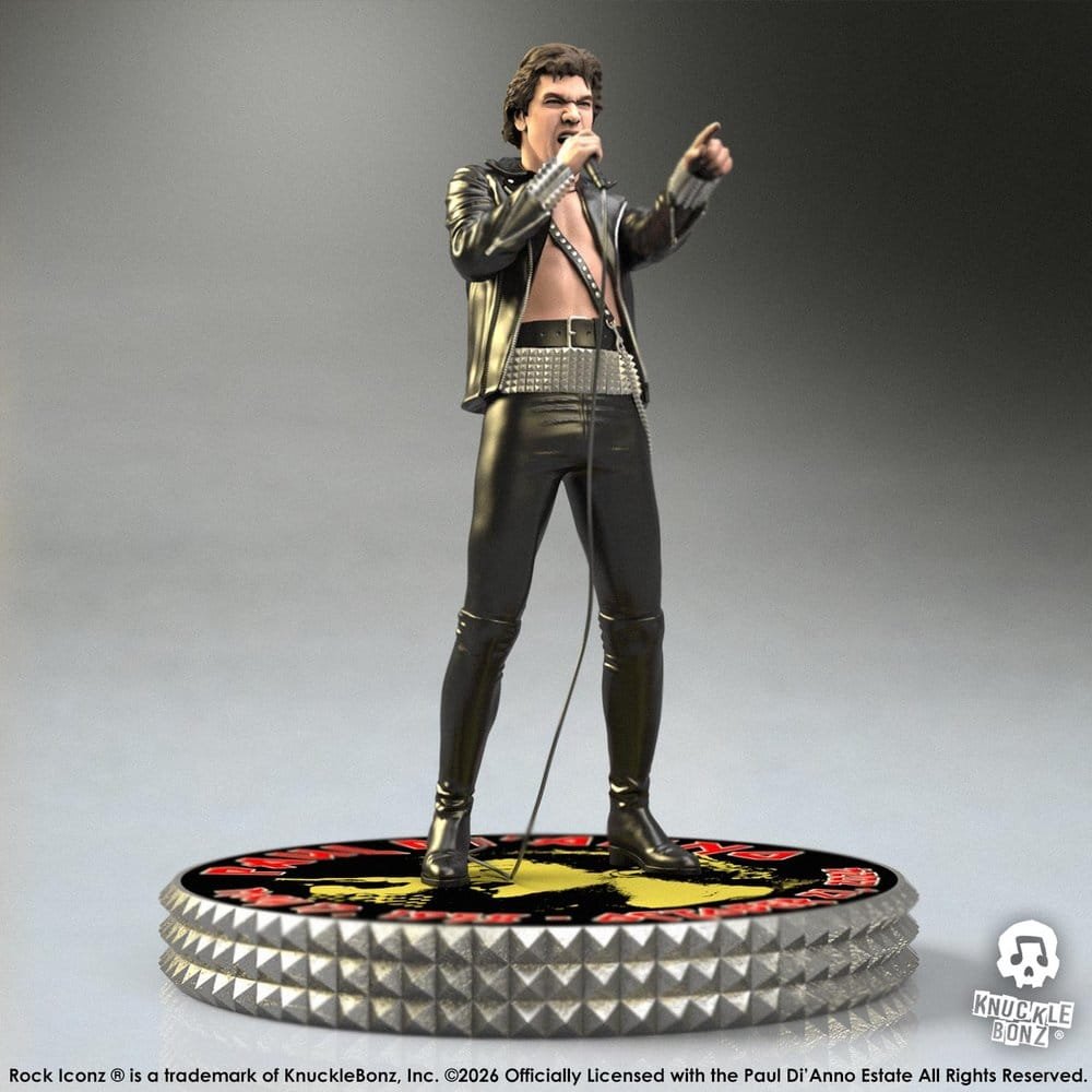 Esta estatua a escala 1/9 de Paul Di’Anno pertenece a la línea Rock Iconz de Knucklebonz, con licencia oficial de Iron Maiden. Limitada a 3000 unidades y con un tamaño de 20 cm, cada pieza se moldea, pinta y numera a mano, e incluye un certificado de autenticidad en la base.