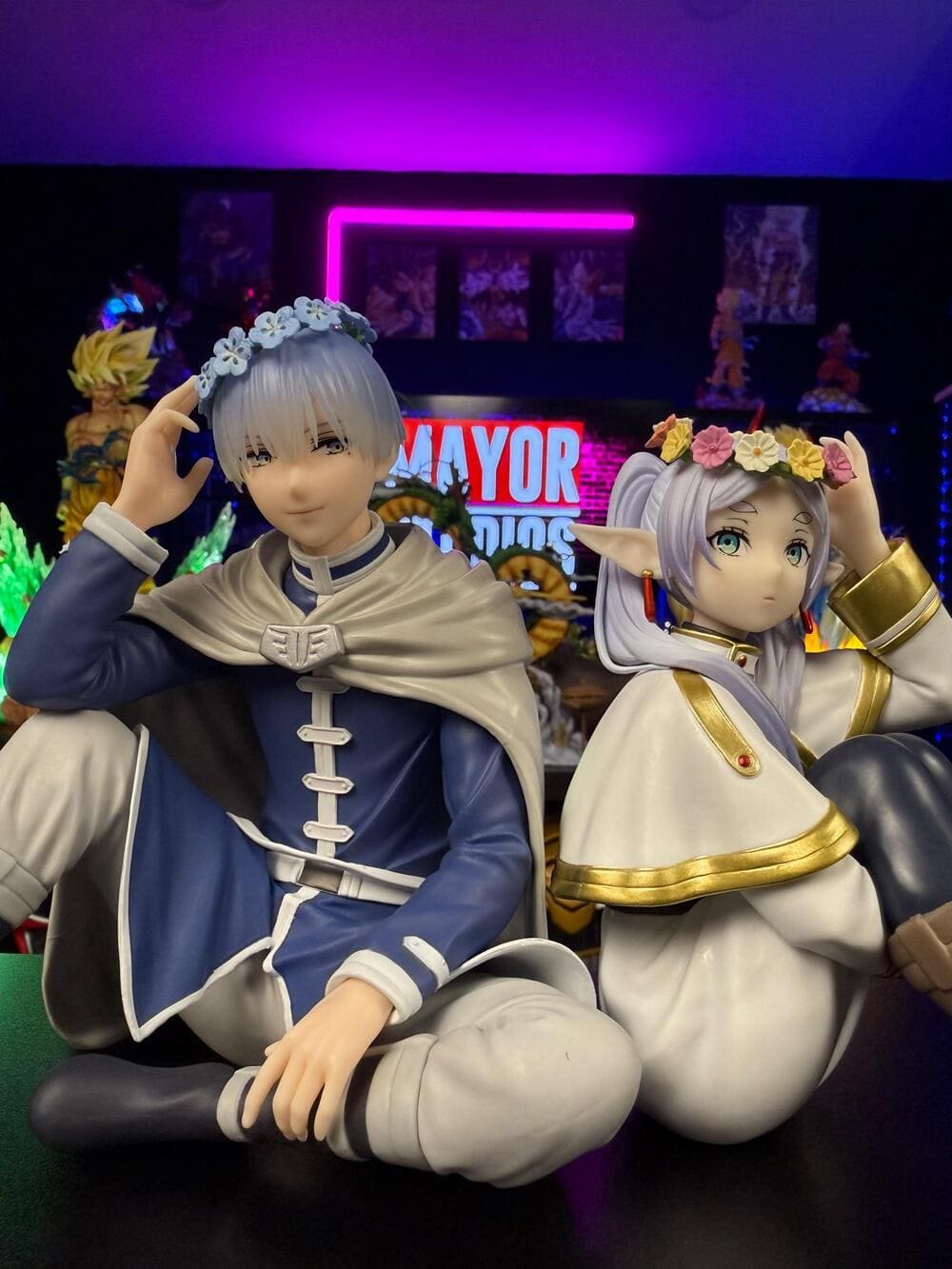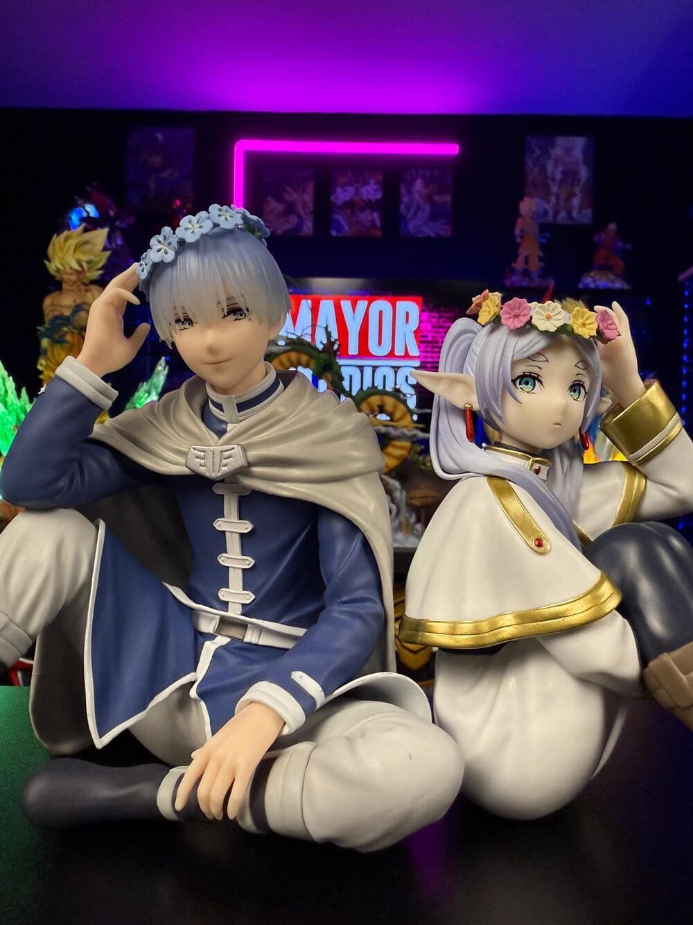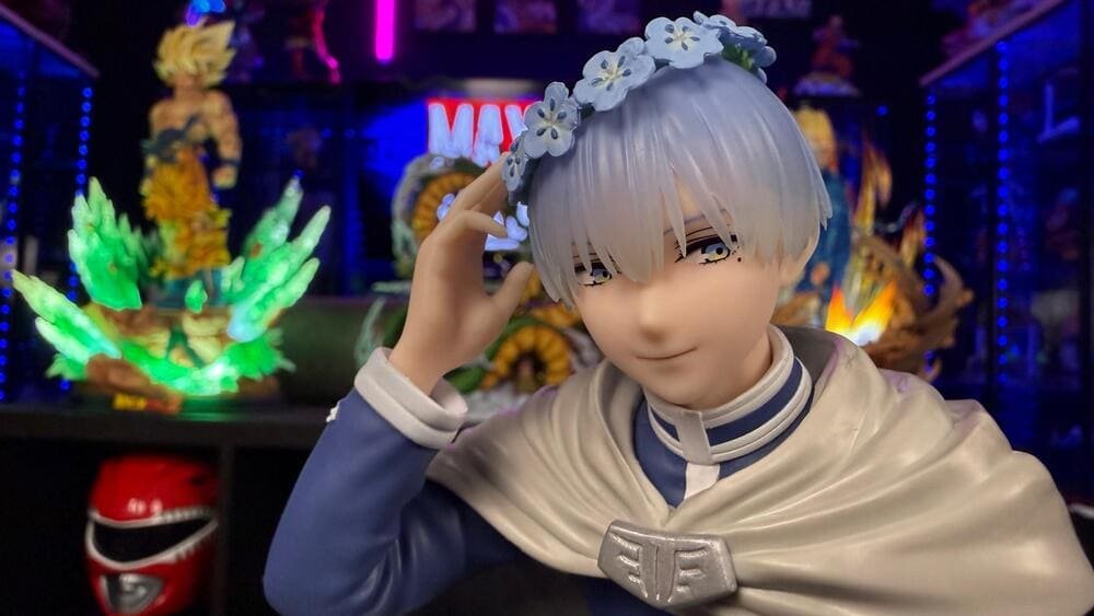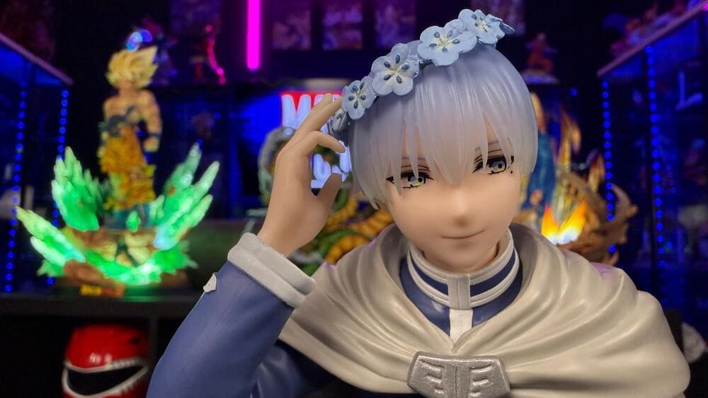 Como detalle emocional clave, ambas figuras incluyen las “Flores de Girasol”, las favoritas de Himmel: él las lleva en una corona y Frieren sostiene una. Este símbolo unifica el set y representa el profundo impacto del héroe en la vida inmortal de Frieren. Es una pieza esencial que encapsula la conmovedora historia de su vínculo.