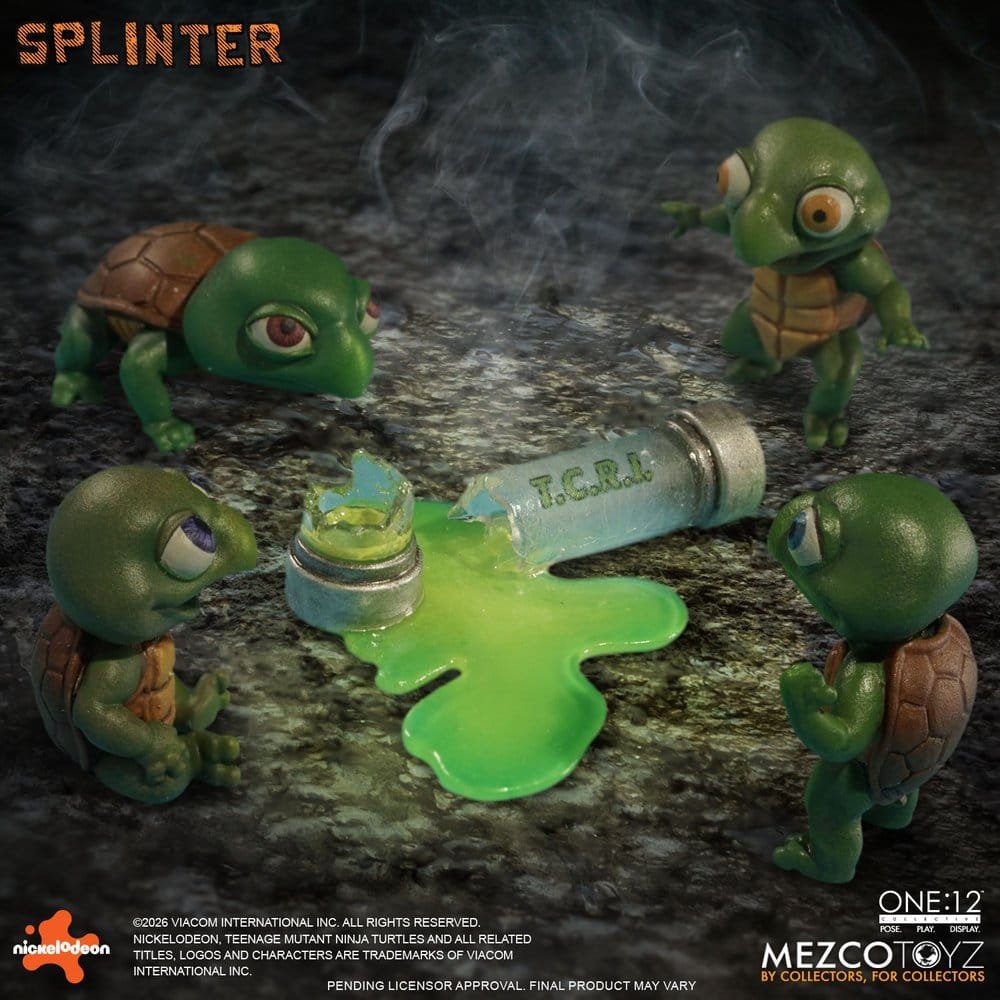 El sabio Maestro Splinter emerge de las sombras en la excepcional línea One:12 Collective de Mezco Toys. Esta figura de 17 cm a escala 1/12 captura al mentor de Las Tortugas Ninja con su atuendo de tela real, e incluye múltiples cabezas intercambiables, armas tradicionales y cuatro adorables tortugas bebé estáticas, ofreciendo la representación definitiva del legendario artista marcial.