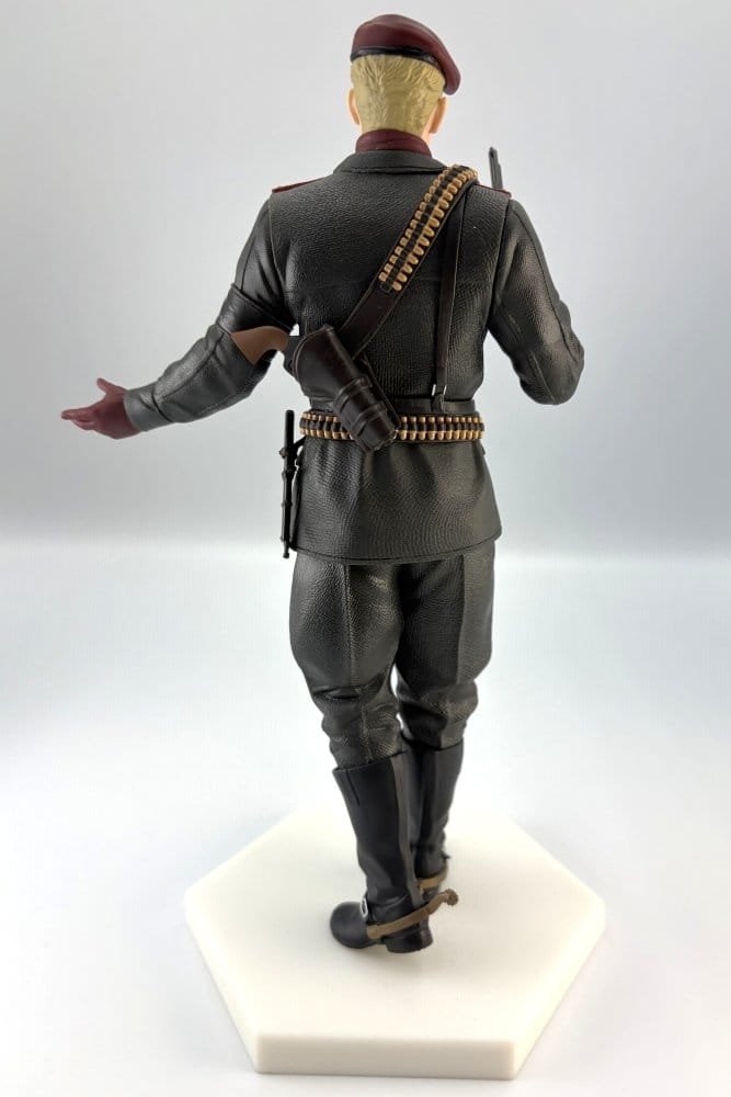 El arrogante y letal mayor Ocelot hace su aparición con su característico revólver. Esta figura de PVC de 20 cm, basada en Metal Gear Solid Delta: Snake Eater, recrea con gran fidelidad la soberbia y el estilo militar del joven comandante de la unidad Ocelot, lista para batirse en duelo.