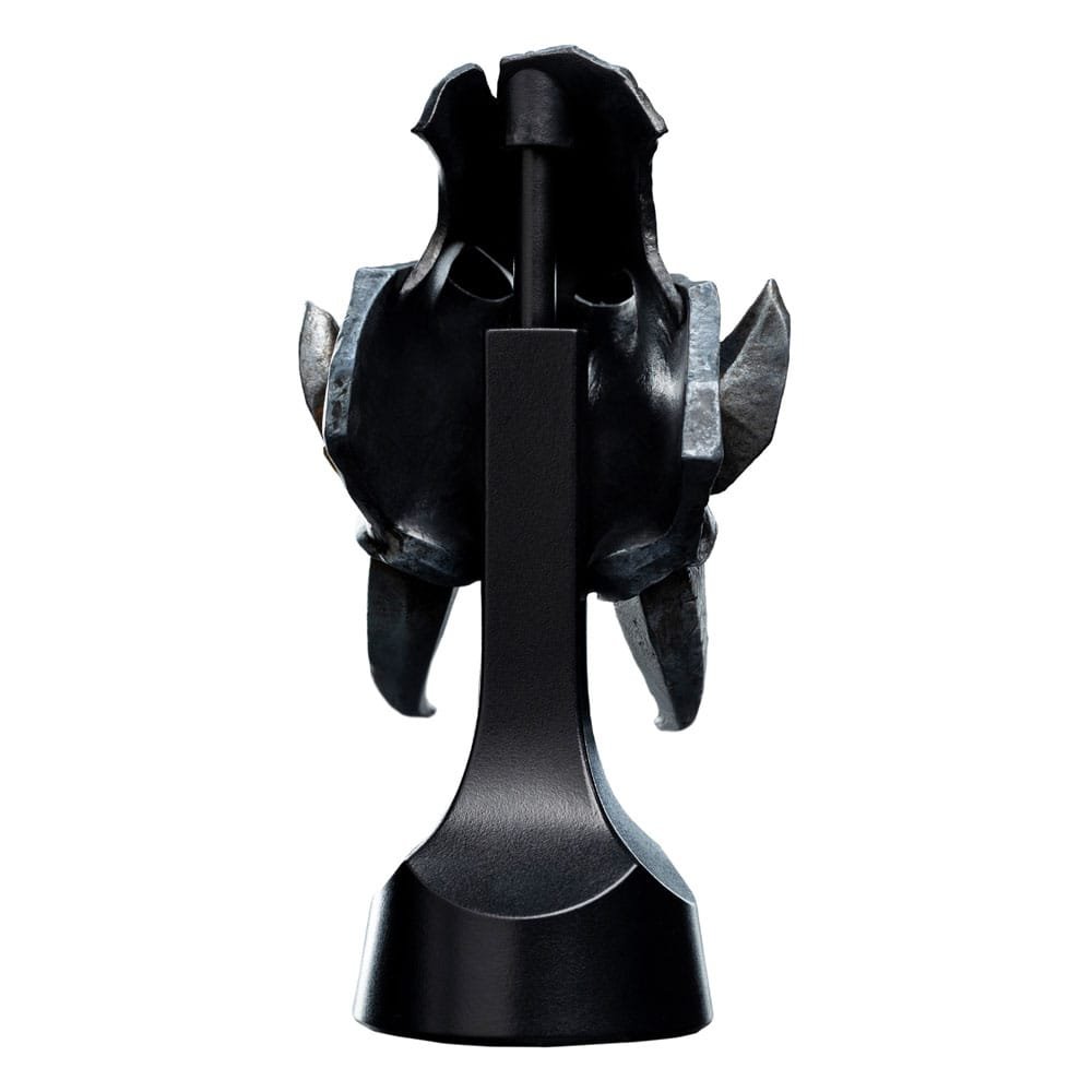 La fuerza bruta de la destrucción cobra forma en esta réplica a escala 1/4 del casco de un Orruk Ardboy. Fabricada por Weta Workshop en poliresina y con unas dimensiones de 15 cm, esta pesada pieza de colección del universo Warhammer: Age of Sigmar exhibe la tosca pero letal artesanía de la piel verde.